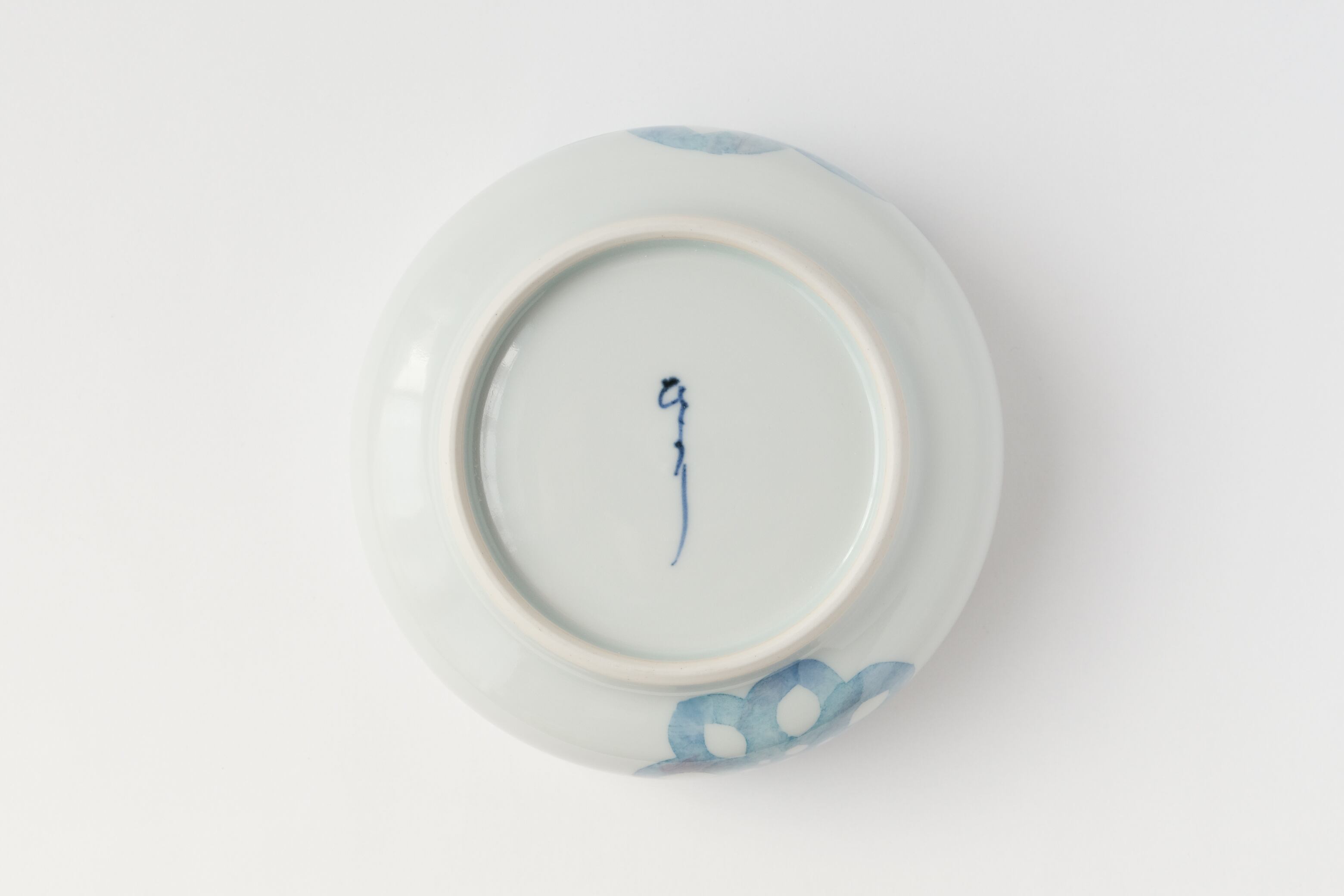 煮物をゴロっと入れたり、フルーツやシチューを入れたり。口径はそこまで大きくありませんが、深みがあるのでたっぷり入るサイズです。ご家庭にひとつあると大変便利な器です。内側と外側に薄い和紙の型紙を作り、そこに色を落としていく和紙染めという技法で描いています。筆では出せない水彩画のようなやわらかな表現ができることが特徴です。モチーフは雪の結晶からヒントをもらい、雪の花がふわっと咲くようなイメージで絵付けをしましたが、蓮根に見えるのでこの名前が付きました。見通しの良い縁起模様です。やわらかなブルーロータスの絵付けがお料理を引き立てます。作陶と絵付を女性二人分業で行っています。