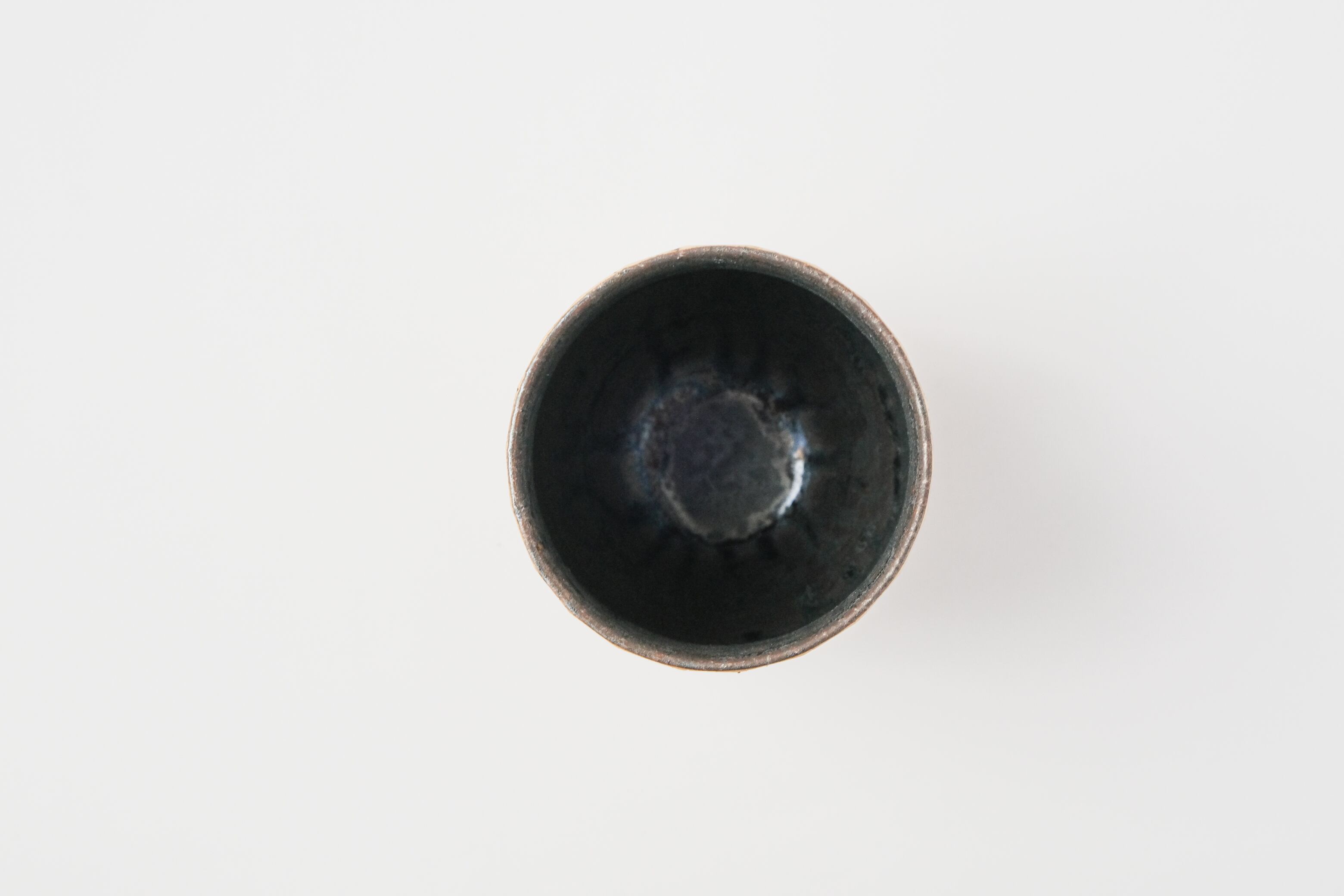 そこからさらに表面の凹凸に色をすり込み、内側には艶と艶無しの二つのコントラストからなる黒い釉薬を掛け焼成します。